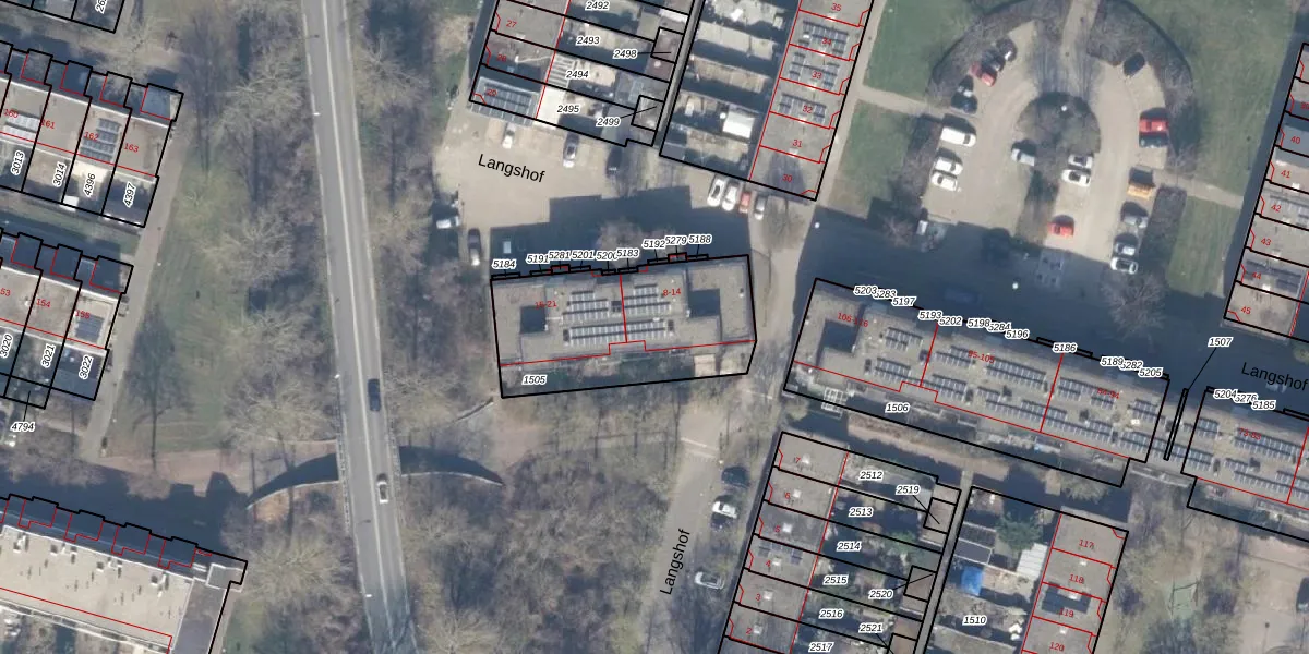 Het perceel waarop Langshof 13 staat heeft een oppervlakte van 705 m². Dit is een groot perceel. De perceeloppervlakte wordt geregistreerd door het Kadaster. Gedetailleerde informatie over de maten van dit perceel kunt u vinden in het rapport Kadastrale kaart met maatvoering van Langshof 13.