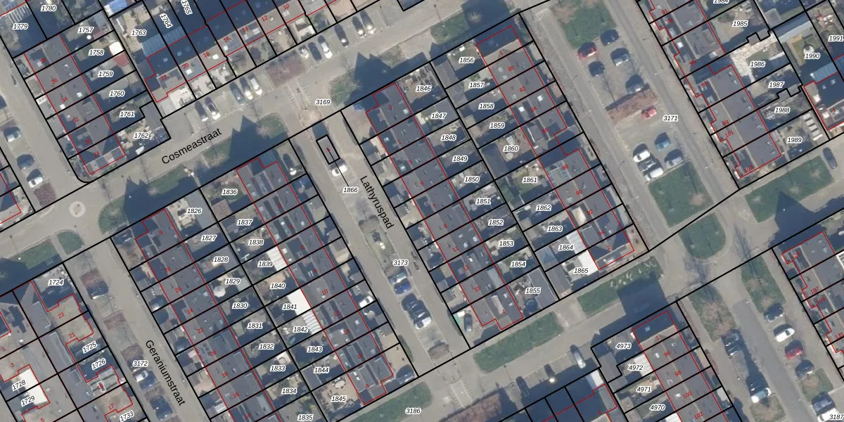 Lathyruspad 7 is gelegen op kadastraal perceel AMR04N1850. Deze kadastrale aanduiding is uniek en wordt gebruikt door het Kadaster om eigendomsrechten en andere zakelijke rechten vast te leggen. Het perceel maakt onderdeel uit van de kadastrale gemeente Almere.
