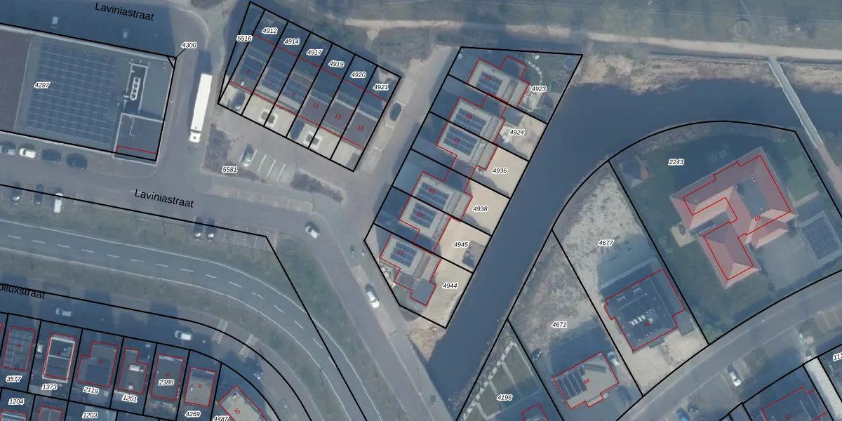 Het perceel waarop Laviniastraat 25 staat heeft een oppervlakte van 263 m². Dit is een middelgroot perceel. De perceeloppervlakte wordt geregistreerd door het Kadaster. Gedetailleerde informatie over de maten van dit perceel kunt u vinden in het rapport Kadastrale kaart met maatvoering van Laviniastraat 25.