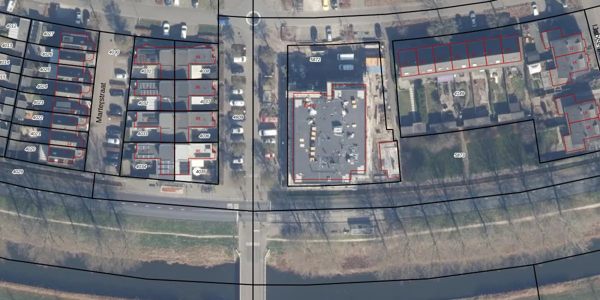 Het perceel waarop het adres ligt is AMR04-N-5872. De afkorting 'AMR04' staat voor kadastrale gemeente Almere. Het perceel is kleiner dan gemiddeld in Almere. Het perceel is 1577 m² groot, terwijl het gemiddelde ligt op 3328,15 m². Het grootste perceel in de kadastrale gemeente is 32,12 km². Het kleinste perceel heeft een oppervlakte van 0 m². Op het perceel liggen in totaal 24 adressen. De huidige grenzen van het perceel zijn digitaal in de Basisregistratie Kadaster (BRK) geregistreerd op 08-12-2003.