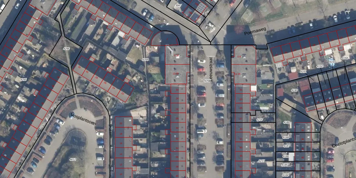Het perceel waarop Leeuwstraat 22 staat heeft een oppervlakte van 6282 m². Dit is een zeer groot perceel. De perceeloppervlakte wordt geregistreerd door het Kadaster. Gedetailleerde informatie over de maten van dit perceel kunt u vinden in het rapport Kadastrale kaart met maatvoering van Leeuwstraat 22.