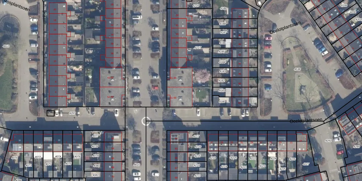 Het perceel waarop het adres ligt is AMR04-N-6217. De afkorting 'AMR04' staat voor kadastrale gemeente Almere. Het perceel is kleiner dan gemiddeld in Almere. Het perceel is 1360 m² groot, terwijl het gemiddelde ligt op 3328,15 m². Het grootste perceel in de kadastrale gemeente is 32,12 km². Het kleinste perceel heeft een oppervlakte van 0 m². Er zijn 16 adressen aanwezig op het perceel. In de Basisregistratie Kadaster (BRK) werden de grenzen van het perceel geregistreerd op 24-06-2010.