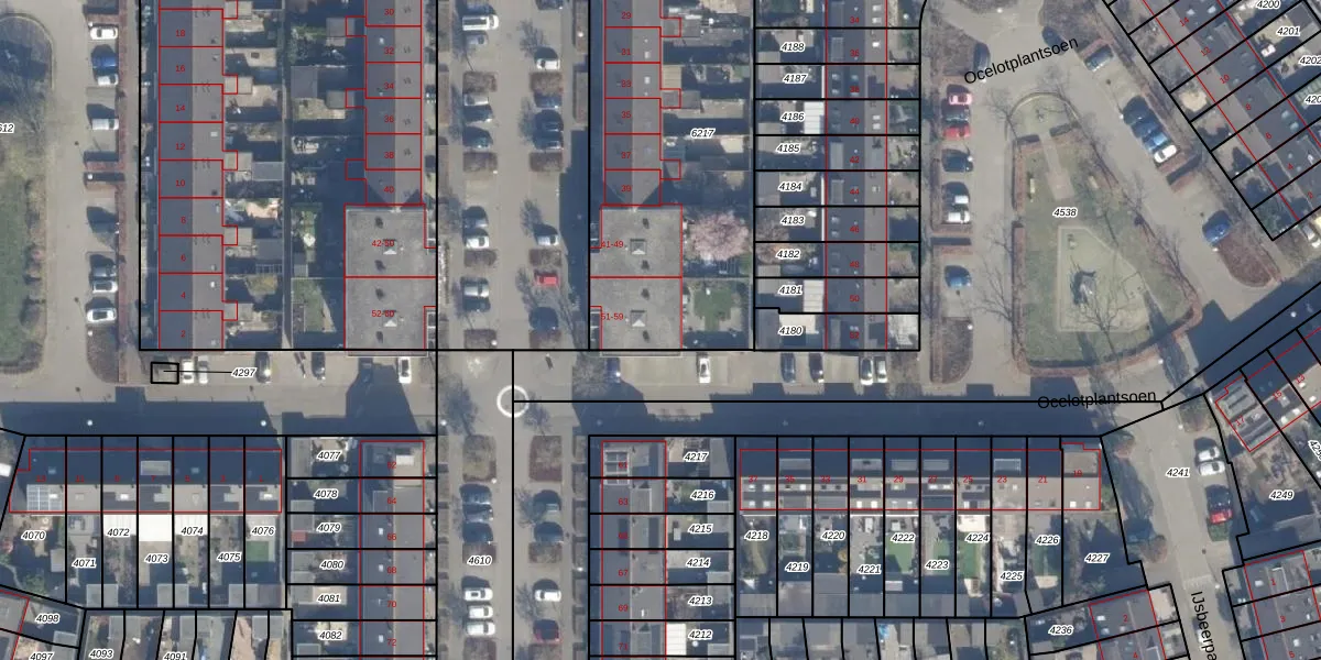Het perceel waarop het adres ligt is AMR04-N-6217. De afkorting 'AMR04' staat voor kadastrale gemeente Almere. Het perceel is kleiner dan gemiddeld in Almere. Het perceel is 1360 m² groot, terwijl het gemiddelde ligt op 3327,62 m². Het grootste perceel in de kadastrale gemeente is 32,12 km². Het kleinste perceel heeft een oppervlakte van 0 m². Er zijn 16 adressen aanwezig op het perceel. De laatste wijziging in het de Basisregistratie Kadaster (BRK) was op 24-06-2010.