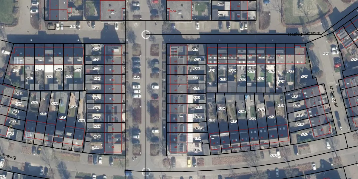 Gebruik de zoekbalk of klik op een perceel voor informatie over de adressen binnen dit perceel.