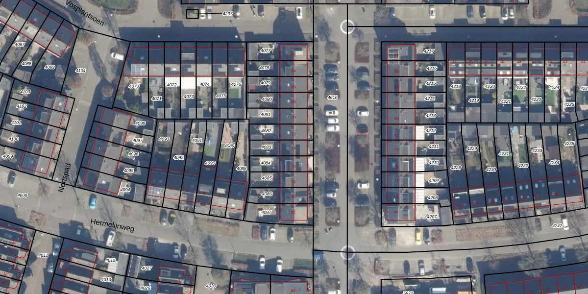 Het perceel waarop het adres ligt is AMR04-N-4083. De afkorting 'AMR04' staat voor kadastrale gemeente Almere. De gemiddelde perceelgrootte in Almere is 3328,15 m². Dit perceel is kleiner: de perceeloppervlakte bedraagt 118 m². Het kleinste perceel in de kadastrale gemeente is 0 m² groot. De grootste perceeloppervlakte is 32,12 km². Er zijn geen andere adressen aanwezig op het perceel. De huidige grenzen van het perceel zijn digitaal in de Basisregistratie Kadaster (BRK) geregistreerd op 20-08-1997.