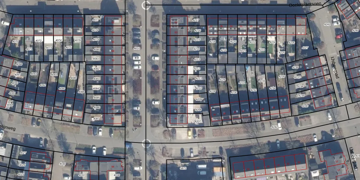 Het perceel waarop het adres ligt is AMR04-N-4210. De afkorting 'AMR04' staat voor kadastrale gemeente Almere. Het perceel is kleiner dan gemiddeld in Almere. Het perceel is 117 m² groot, terwijl het gemiddelde ligt op 3327,62 m². Het grootste perceel in de kadastrale gemeente is 32,12 km². Het kleinste perceel heeft een oppervlakte van 0 m². Er zijn geen andere adressen aanwezig op het perceel. De huidige grenzen van het perceel zijn digitaal in de Basisregistratie Kadaster (BRK) geregistreerd op 20-08-1997.