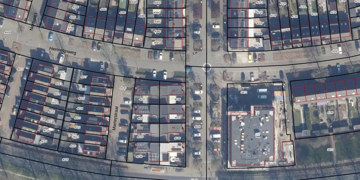 Het perceel waarop het adres ligt is AMR04-N-4038. De afkorting 'AMR04' staat voor kadastrale gemeente Almere. De gemiddelde perceelgrootte in Almere is 3327,62 m². Dit perceel is kleiner: de perceeloppervlakte bedraagt 180 m². Het kleinste perceel in de kadastrale gemeente is 0 m² groot. De grootste perceeloppervlakte is 32,12 km². Er zijn geen andere adressen aanwezig op het perceel. In de Basisregistratie Kadaster (BRK) werden de grenzen van het perceel geregistreerd op 20-08-1997.