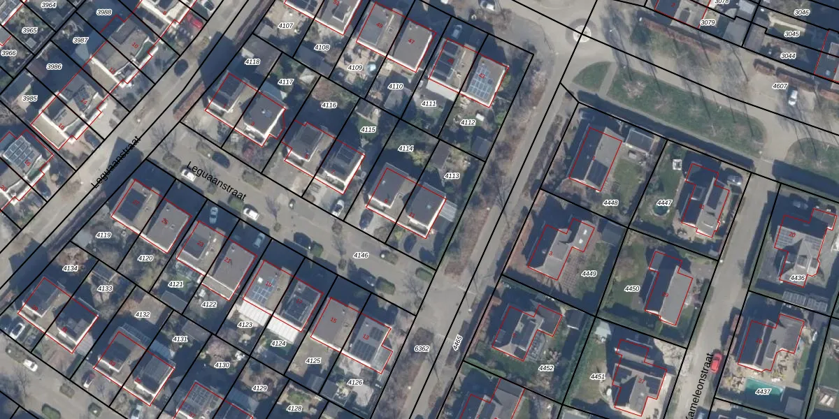 Leguaanstraat 11 is gelegen op kadastraal perceel AMR04N4113. Deze kadastrale aanduiding is uniek en wordt gebruikt door het Kadaster om eigendomsrechten en andere zakelijke rechten vast te leggen. Het perceel maakt onderdeel uit van de kadastrale gemeente Almere.