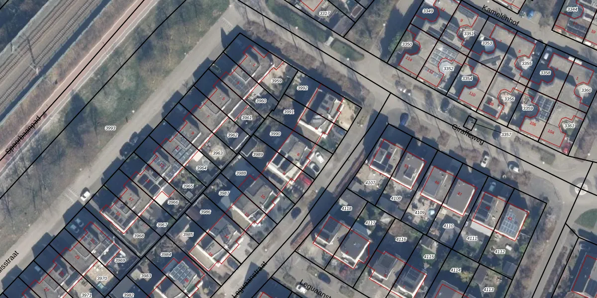 Het perceel waarop Leguaanstraat 6 staat heeft een oppervlakte van 237 m². Dit is een middelgroot perceel. De perceeloppervlakte wordt geregistreerd door het Kadaster. Gedetailleerde informatie over de maten van dit perceel kunt u vinden in het rapport Kadastrale kaart met maatvoering van Leguaanstraat 6.