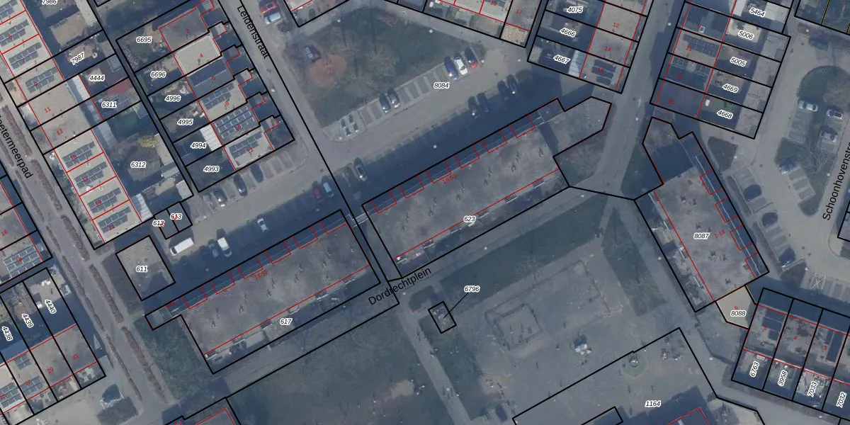 Het perceel waarop het adres ligt is AMR04-K-623. De afkorting 'AMR04' staat voor kadastrale gemeente Almere. De gemiddelde perceelgrootte in Almere is 3329,36 m². Dit perceel is kleiner: de perceeloppervlakte bedraagt 1040 m². Het kleinste perceel in de kadastrale gemeente is 0 m² groot. De grootste perceeloppervlakte is 32,12 km². Op het perceel liggen in totaal 18 adressen. De huidige grenzen van het perceel zijn digitaal in de Basisregistratie Kadaster (BRK) geregistreerd op 20-08-1997.
