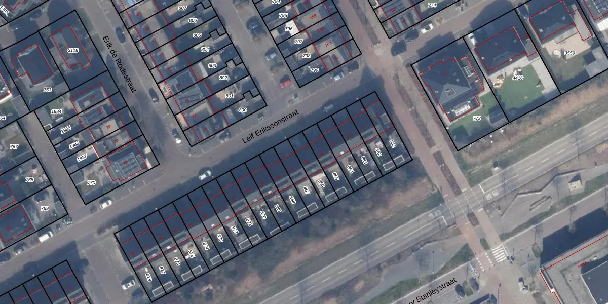 Leif Erikssonstraat 25 is gelegen op kadastraal perceel AMR04W866. Deze kadastrale aanduiding is uniek en wordt gebruikt door het Kadaster om eigendomsrechten en andere zakelijke rechten vast te leggen. Het perceel maakt onderdeel uit van de kadastrale gemeente Almere.