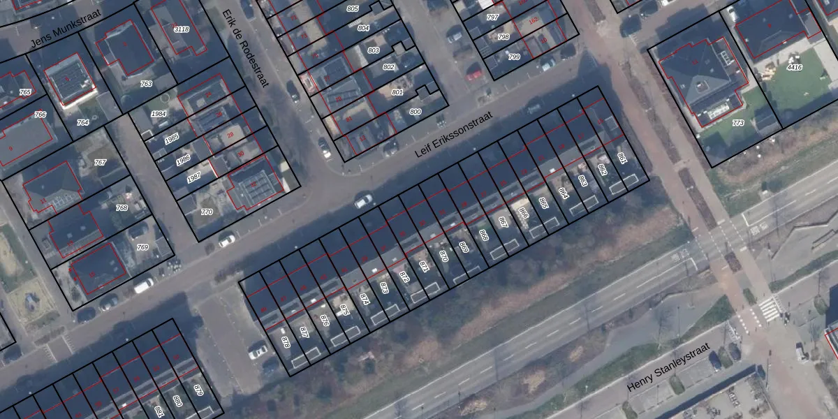 Leif Erikssonstraat 33 is gelegen op kadastraal perceel AMR04W870. Deze kadastrale aanduiding is uniek en wordt gebruikt door het Kadaster om eigendomsrechten en andere zakelijke rechten vast te leggen. Het perceel maakt onderdeel uit van de kadastrale gemeente Almere.