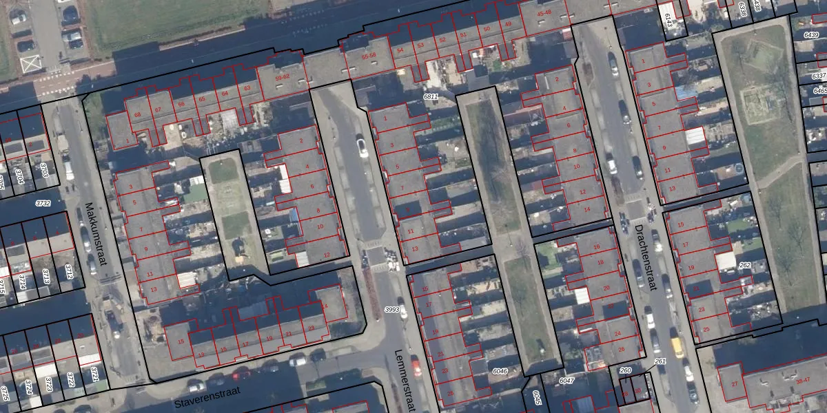Het perceel waarop Lemmerstraat 9 staat heeft een oppervlakte van 7740 m². Dit is een zeer groot perceel. De perceeloppervlakte wordt geregistreerd door het Kadaster. Gedetailleerde informatie over de maten van dit perceel kunt u vinden in het rapport Kadastrale kaart met maatvoering van Lemmerstraat 9.