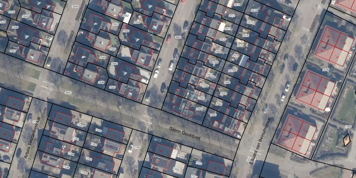 Gebruik de zoekbalk of klik op een perceel voor informatie over de adressen binnen dit perceel.