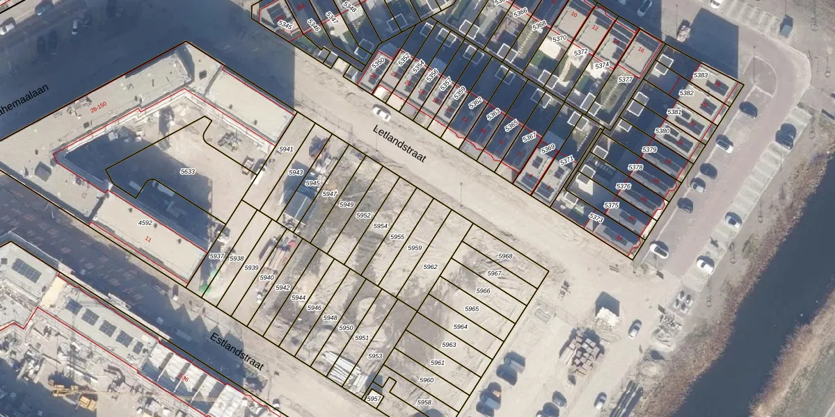 Letlandstraat 5 is gelegen op kadastraal perceel AMR04W5955. Deze kadastrale aanduiding is uniek en wordt gebruikt door het Kadaster om eigendomsrechten en andere zakelijke rechten vast te leggen. Het perceel maakt onderdeel uit van de kadastrale gemeente Almere.