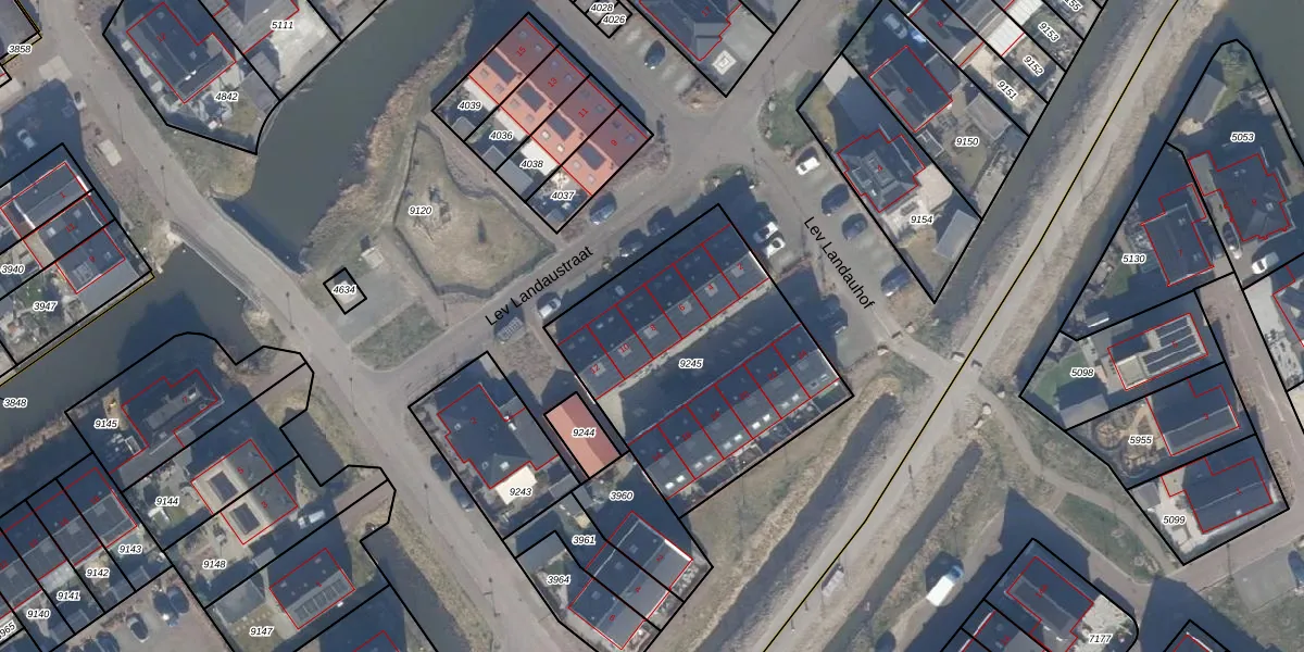 Lev Landauhof 8 is gelegen op kadastraal perceel AMR04C9245. Deze kadastrale aanduiding is uniek en wordt gebruikt door het Kadaster om eigendomsrechten en andere zakelijke rechten vast te leggen. Het perceel maakt onderdeel uit van de kadastrale gemeente Almere.