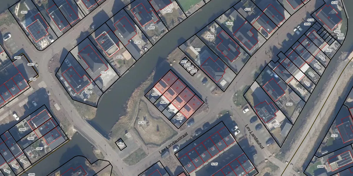 Lev Landaustraat 13 is gelegen op kadastraal perceel AMR04C4036. Deze kadastrale aanduiding is uniek en wordt gebruikt door het Kadaster om eigendomsrechten en andere zakelijke rechten vast te leggen. Het perceel maakt onderdeel uit van de kadastrale gemeente Almere.