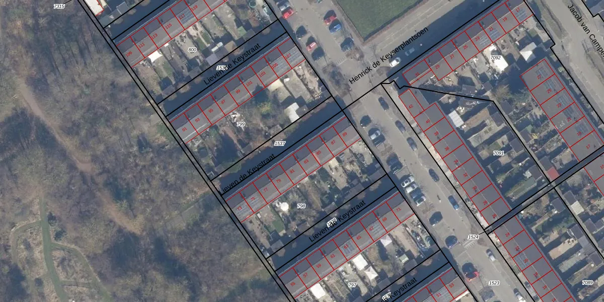 Het perceel waarop Lieven de Keystraat 83 staat heeft een oppervlakte van 1261 m². Dit is een zeer groot perceel. De perceeloppervlakte wordt geregistreerd door het Kadaster. Gedetailleerde informatie over de maten van dit perceel kunt u vinden in het rapport Kadastrale kaart met maatvoering van Lieven de Keystraat 83.
