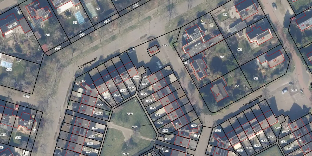 Lindengouw 90 is gelegen op kadastraal perceel AMR04G1303. Deze kadastrale aanduiding is uniek en wordt gebruikt door het Kadaster om eigendomsrechten en andere zakelijke rechten vast te leggen. Het perceel maakt onderdeel uit van de kadastrale gemeente Almere.