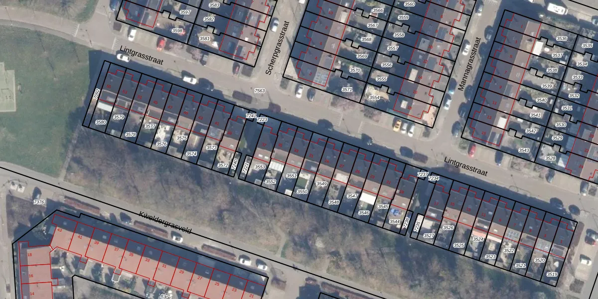 Het perceel waarop Lintgrasstraat 33 staat heeft een oppervlakte van 124 m². Dit is een middelgroot perceel. De perceeloppervlakte wordt geregistreerd door het Kadaster. Gedetailleerde informatie over de maten van dit perceel kunt u vinden in het rapport Kadastrale kaart met maatvoering van Lintgrasstraat 33.
