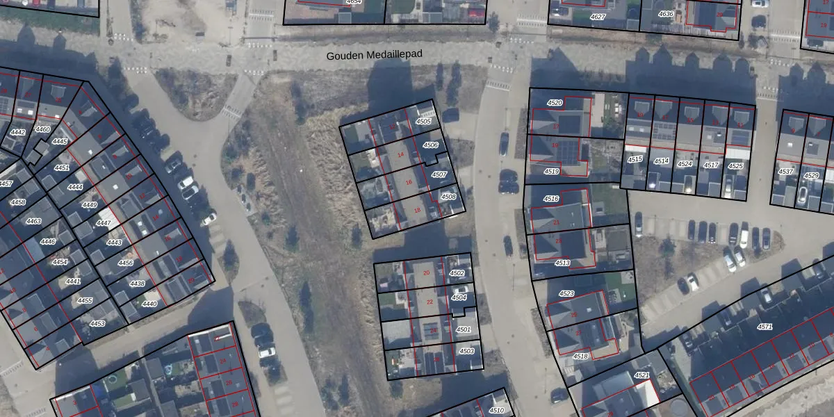 Het adres ligt op het perceel AMR04-W-4508, dat zich in de kadastrale gemeente Almere bevindt. De gemiddelde perceelgrootte in Almere is 3328,15 m². Dit perceel is kleiner: de perceeloppervlakte bedraagt 167 m². De grootste perceeloppervlakte in de kadastrale gemeente is 32,12 km². De kleinste oppervlakte bedraagt 0 m². Dit is het enige adres dat aanwezig is op het perceel. In de Basisregistratie Kadaster (BRK) werden de grenzen van het perceel geregistreerd op 15-07-2022.