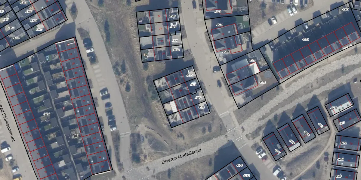 Het adres ligt op het perceel AMR04-W-4511, dat zich in de kadastrale gemeente Almere bevindt. De gemiddelde perceelgrootte in Almere is 3328,15 m². Dit perceel is kleiner: de perceeloppervlakte bedraagt 160 m². De grootste perceeloppervlakte in de kadastrale gemeente is 32,12 km². De kleinste oppervlakte bedraagt 0 m². Er zijn geen andere adressen aanwezig op het perceel. In de Basisregistratie Kadaster (BRK) werden de grenzen van het perceel geregistreerd op 15-07-2022.