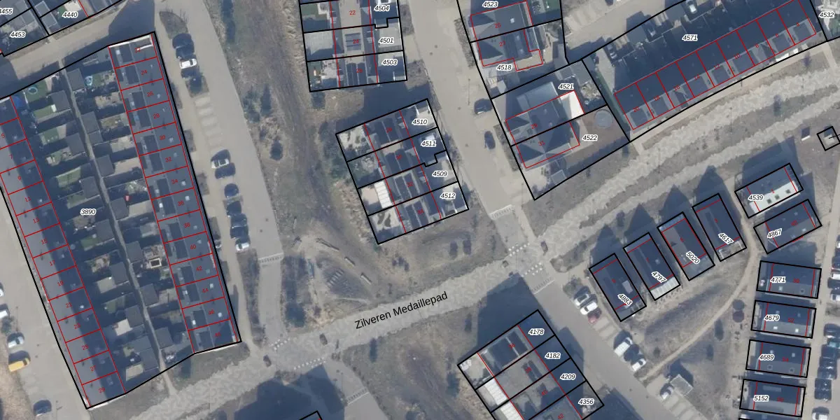 Het adres ligt op het perceel AMR04-W-4512, dat zich in de kadastrale gemeente Almere bevindt. De gemiddelde perceelgrootte in Almere is 3328,15 m². Dit perceel is kleiner: de perceeloppervlakte bedraagt 167 m². De grootste perceeloppervlakte in de kadastrale gemeente is 32,12 km². De kleinste oppervlakte bedraagt 0 m². Er zijn geen andere adressen aanwezig op het perceel. De laatste wijziging in het de Basisregistratie Kadaster (BRK) was op 15-07-2022.