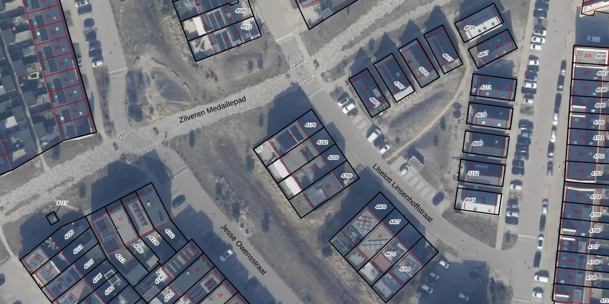 Het adres ligt op het perceel AMR04-W-4182, dat zich in de kadastrale gemeente Almere bevindt. Het perceel is 153 m² groot. Dat is kleiner dan de gemiddelde perceeloppervlakte in Almere, dat op 3328,15 m² ligt. Het grootste perceel in de kadastrale gemeente is 32,12 km². Het kleinste perceel heeft een oppervlakte van 0 m². Dit is het enige adres dat aanwezig is op het perceel. In de Basisregistratie Kadaster (BRK) werden de grenzen van het perceel geregistreerd op 29-06-2023.