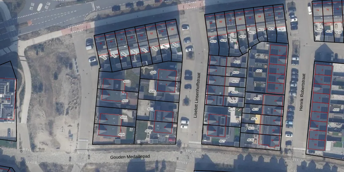 Het adres ligt op het perceel AMR04-W-4648, dat zich in de kadastrale gemeente Almere bevindt. Het perceel is 287 m² groot. Dat is kleiner dan de gemiddelde perceeloppervlakte in Almere, dat op 3328,15 m² ligt. Het grootste perceel in de kadastrale gemeente is 32,12 km². Het kleinste perceel heeft een oppervlakte van 0 m². Er zijn geen andere adressen aanwezig op het perceel. In de Basisregistratie Kadaster (BRK) werden de grenzen van het perceel geregistreerd op 02-08-2022.