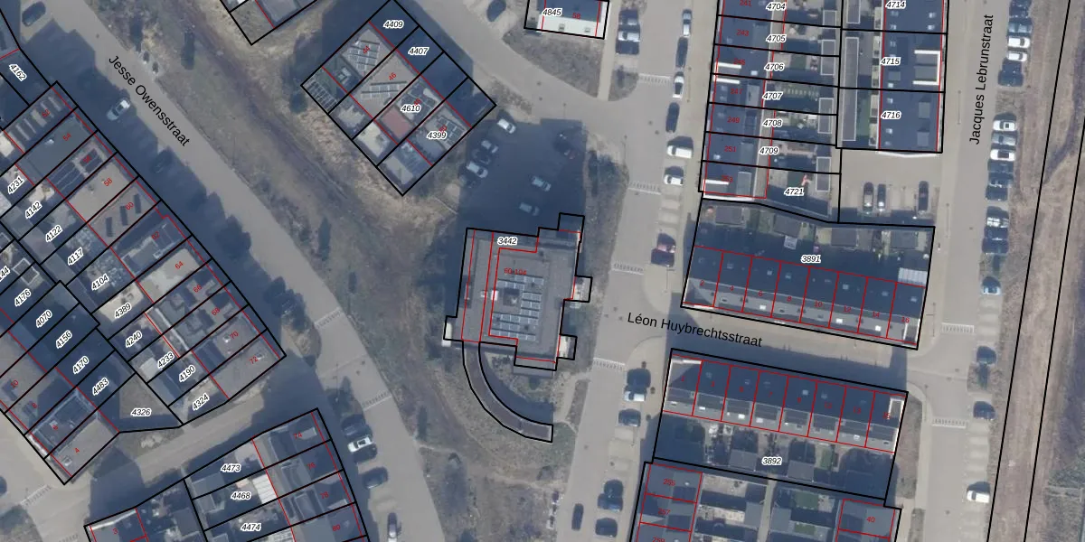 Het adres ligt op het perceel AMR04-W-3442, dat zich in de kadastrale gemeente Almere bevindt. De gemiddelde perceelgrootte in Almere is 3328,15 m². Dit perceel is kleiner: de perceeloppervlakte bedraagt 580 m². Het kleinste perceel in de kadastrale gemeente is 0 m² groot. De grootste perceeloppervlakte is 32,12 km². Er zijn 23 adressen aanwezig op het perceel. De huidige grenzen van het perceel zijn digitaal in de Basisregistratie Kadaster (BRK) geregistreerd op 22-09-2023.