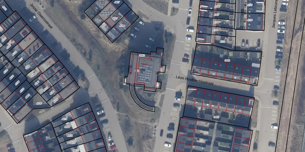 Het adres ligt op het perceel AMR04-W-3442, dat zich in de kadastrale gemeente Almere bevindt. De gemiddelde perceelgrootte in Almere is 3328,15 m². Dit perceel is kleiner: de perceeloppervlakte bedraagt 580 m². Het kleinste perceel in de kadastrale gemeente is 0 m² groot. De grootste perceeloppervlakte is 32,12 km². Er zijn 23 adressen aanwezig op het perceel. De laatste wijziging in het de Basisregistratie Kadaster (BRK) was op 22-09-2023.
