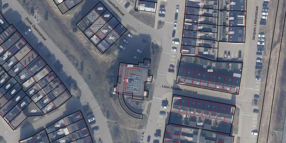Het adres ligt op het perceel AMR04-W-3442, dat zich in de kadastrale gemeente Almere bevindt. De gemiddelde perceelgrootte in Almere is 3328,15 m². Dit perceel is kleiner: de perceeloppervlakte bedraagt 580 m². Het kleinste perceel in de kadastrale gemeente is 0 m² groot. De grootste perceeloppervlakte is 32,12 km². Op het perceel zijn 23 adressen aanwezig. De laatste wijziging in het de Basisregistratie Kadaster (BRK) was op 22-09-2023.