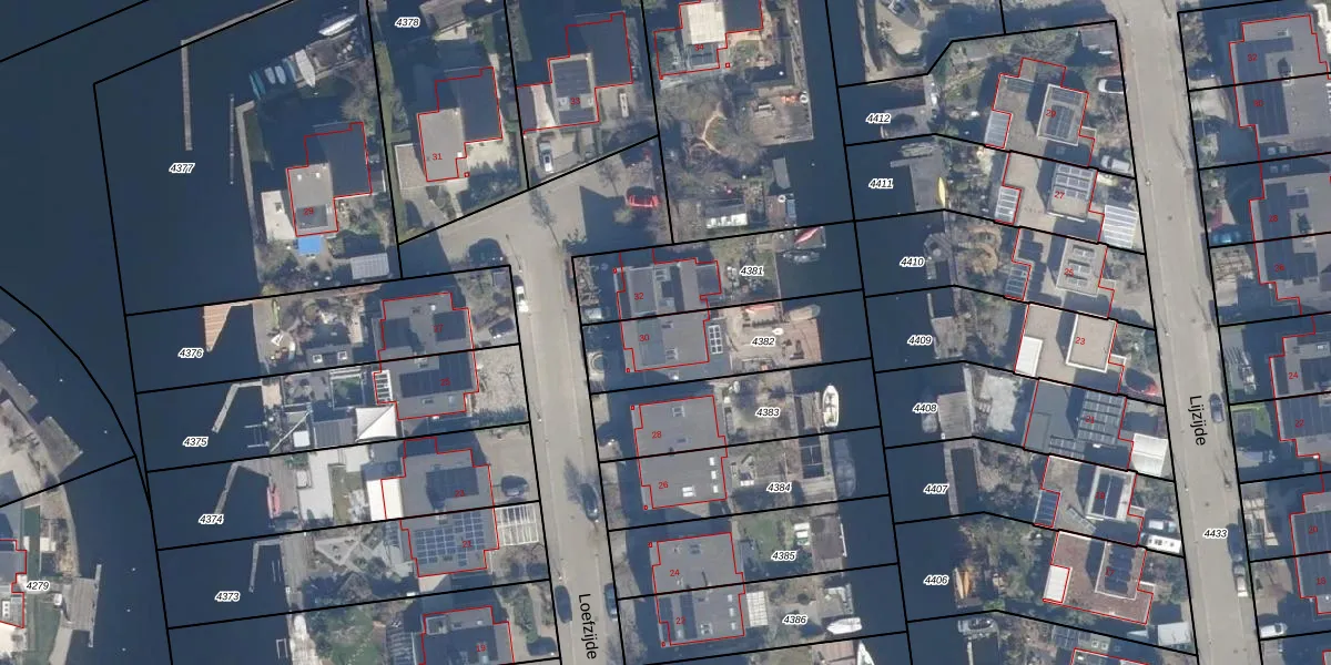 Gebruik de zoekbalk of klik op een perceel voor informatie over de adressen binnen dit perceel.