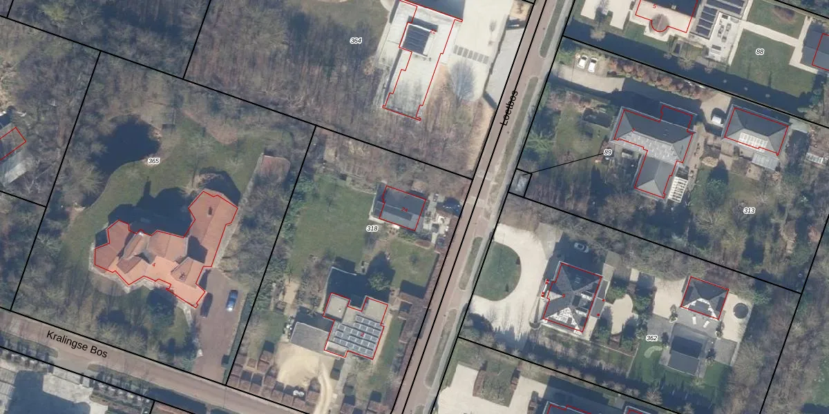 Het perceel waarop Loetbos 24 staat heeft een oppervlakte van 2646 m². Dit is een zeer groot perceel. De perceeloppervlakte wordt geregistreerd door het Kadaster. Gedetailleerde informatie over de maten van dit perceel kunt u vinden in het rapport Kadastrale kaart met maatvoering van Loetbos 24.