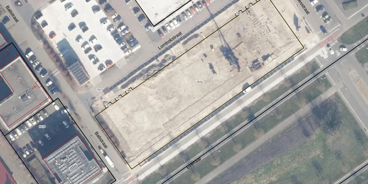Het perceel waarop Lombokstraat 191 staat heeft een oppervlakte van 4007 m². Dit is een zeer groot perceel. De perceeloppervlakte wordt geregistreerd door het Kadaster. Gedetailleerde informatie over de maten van dit perceel kunt u vinden in het rapport Kadastrale kaart met maatvoering van Lombokstraat 191.