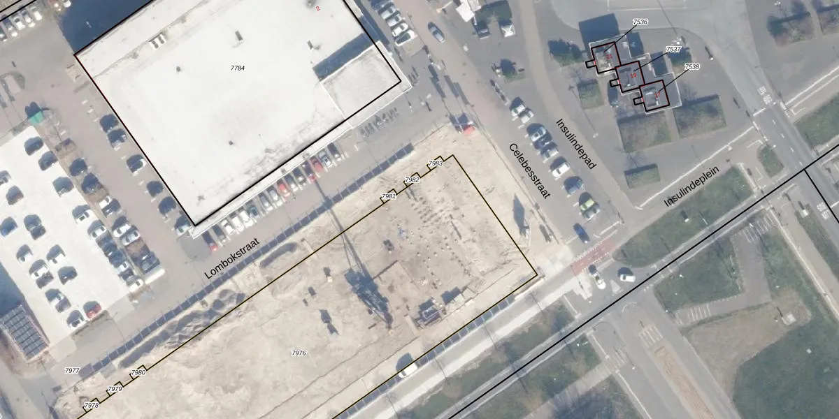 Het perceel waarop Lombokstraat 37 staat heeft een oppervlakte van 4007 m². Dit is een zeer groot perceel. De perceeloppervlakte wordt geregistreerd door het Kadaster. Gedetailleerde informatie over de maten van dit perceel kunt u vinden in het rapport Kadastrale kaart met maatvoering van Lombokstraat 37.