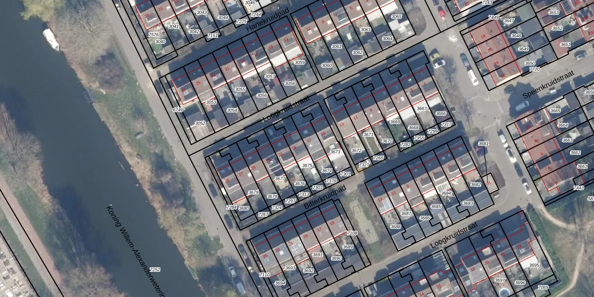 Loogkruidstraat 19 is gelegen op kadastraal perceel AMR04O3675. Deze kadastrale aanduiding is uniek en wordt gebruikt door het Kadaster om eigendomsrechten en andere zakelijke rechten vast te leggen. Het perceel maakt onderdeel uit van de kadastrale gemeente Almere.