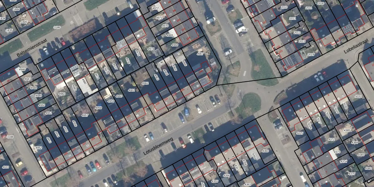 Lotusbloemweg 125 is gelegen op kadastraal perceel AMR04N4965. Deze kadastrale aanduiding is uniek en wordt gebruikt door het Kadaster om eigendomsrechten en andere zakelijke rechten vast te leggen. Het perceel maakt onderdeel uit van de kadastrale gemeente Almere.