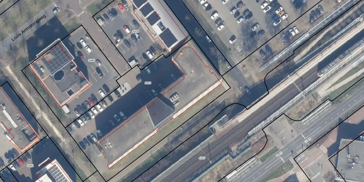 Louis Armstrongweg 134 is gelegen op kadastraal perceel AMR04Q6903. Deze kadastrale aanduiding is uniek en wordt gebruikt door het Kadaster om eigendomsrechten en andere zakelijke rechten vast te leggen. Het perceel maakt onderdeel uit van de kadastrale gemeente Almere.