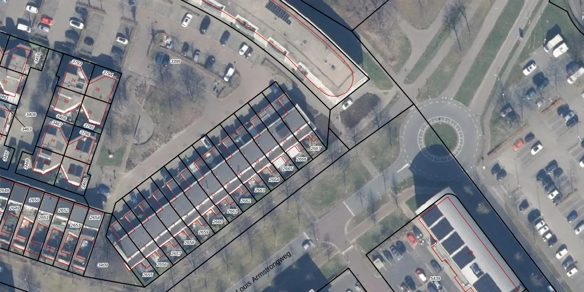 Louis Armstrongweg 23 is gelegen op kadastraal perceel AMR04Q2666. Deze kadastrale aanduiding is uniek en wordt gebruikt door het Kadaster om eigendomsrechten en andere zakelijke rechten vast te leggen. Het perceel maakt onderdeel uit van de kadastrale gemeente Almere.