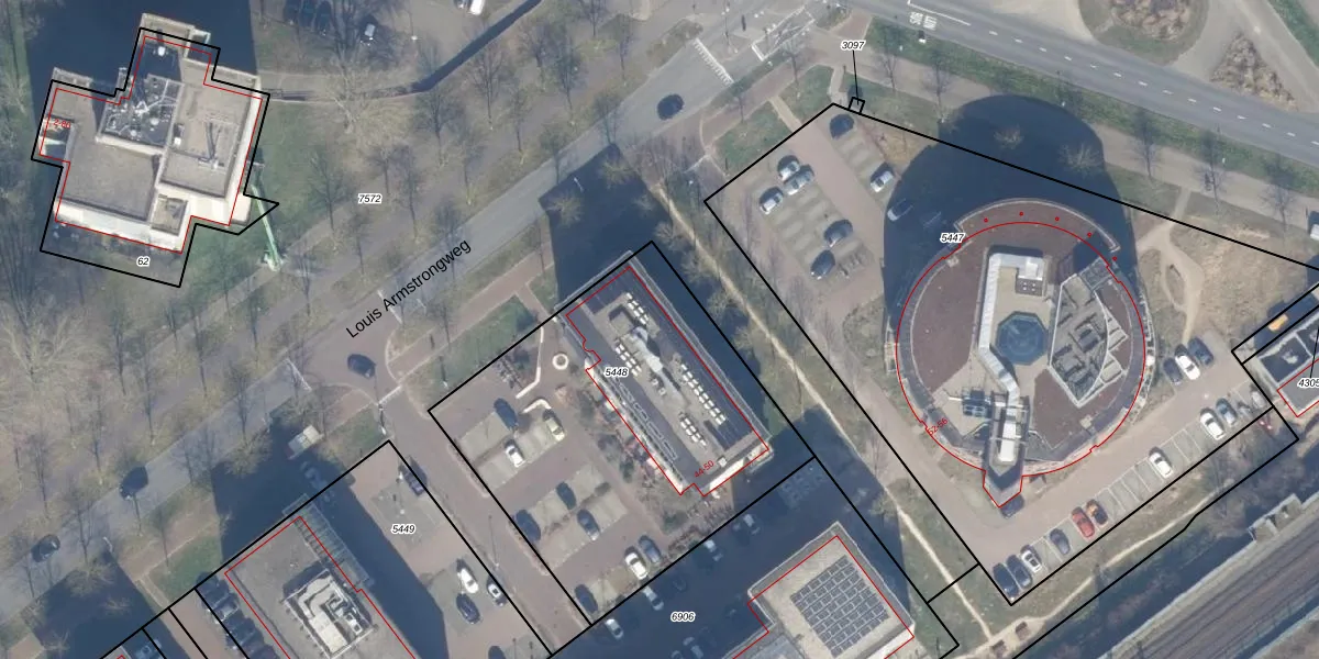 Het perceel waarop Louis Armstrongweg 44-C staat heeft een oppervlakte van 1742 m². Dit is een zeer groot perceel. De perceeloppervlakte wordt geregistreerd door het Kadaster. Gedetailleerde informatie over de maten van dit perceel kunt u vinden in het rapport Kadastrale kaart met maatvoering van Louis Armstrongweg 44-C.