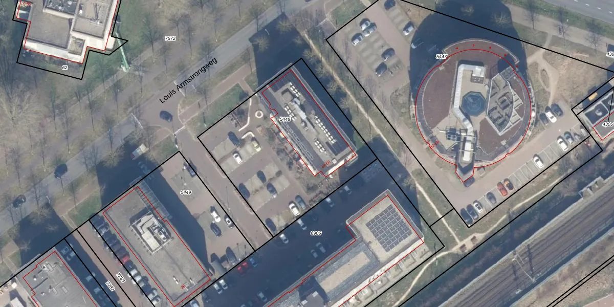 Het perceel waarop Louis Armstrongweg 44-G staat heeft een oppervlakte van 1742 m². Dit is een zeer groot perceel. De perceeloppervlakte wordt geregistreerd door het Kadaster. Gedetailleerde informatie over de maten van dit perceel kunt u vinden in het rapport Kadastrale kaart met maatvoering van Louis Armstrongweg 44-G.