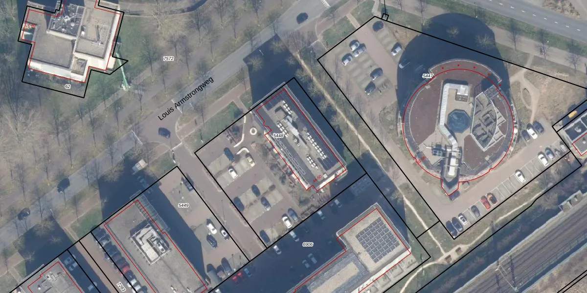 Het perceel waarop Louis Armstrongweg 48-H staat heeft een oppervlakte van 1742 m². Dit is een zeer groot perceel. De perceeloppervlakte wordt geregistreerd door het Kadaster. Gedetailleerde informatie over de maten van dit perceel kunt u vinden in het rapport Kadastrale kaart met maatvoering van Louis Armstrongweg 48-H.