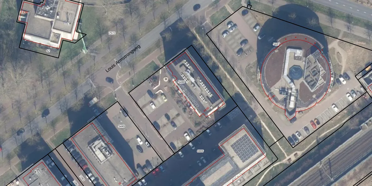 Het perceel waarop Louis Armstrongweg 50-F staat heeft een oppervlakte van 1742 m². Dit is een zeer groot perceel. De perceeloppervlakte wordt geregistreerd door het Kadaster. Gedetailleerde informatie over de maten van dit perceel kunt u vinden in het rapport Kadastrale kaart met maatvoering van Louis Armstrongweg 50-F.