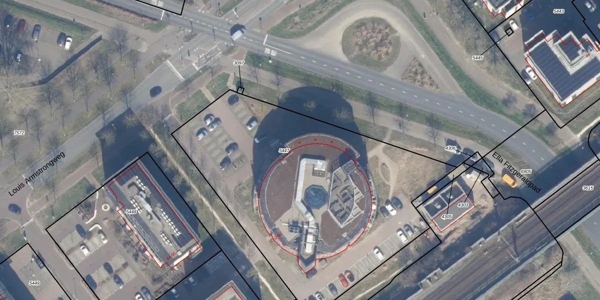 Het perceel waarop Louis Armstrongweg 56-A staat heeft een oppervlakte van 3631 m². Dit is een zeer groot perceel. De perceeloppervlakte wordt geregistreerd door het Kadaster. Gedetailleerde informatie over de maten van dit perceel kunt u vinden in het rapport Kadastrale kaart met maatvoering van Louis Armstrongweg 56-A.