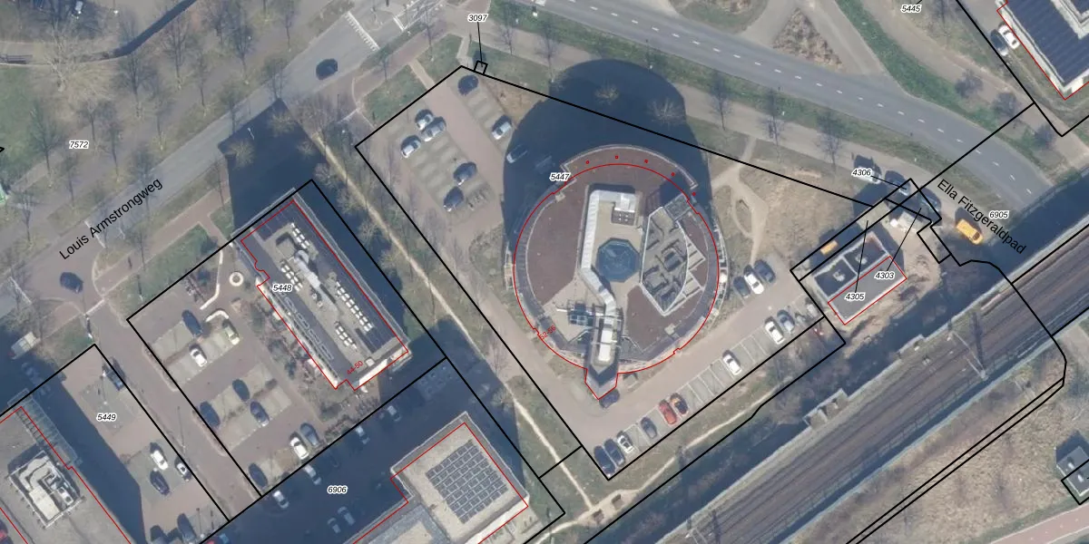Het perceel waarop Louis Armstrongweg 56-N staat heeft een oppervlakte van 3631 m². Dit is een zeer groot perceel. De perceeloppervlakte wordt geregistreerd door het Kadaster. Gedetailleerde informatie over de maten van dit perceel kunt u vinden in het rapport Kadastrale kaart met maatvoering van Louis Armstrongweg 56-N.