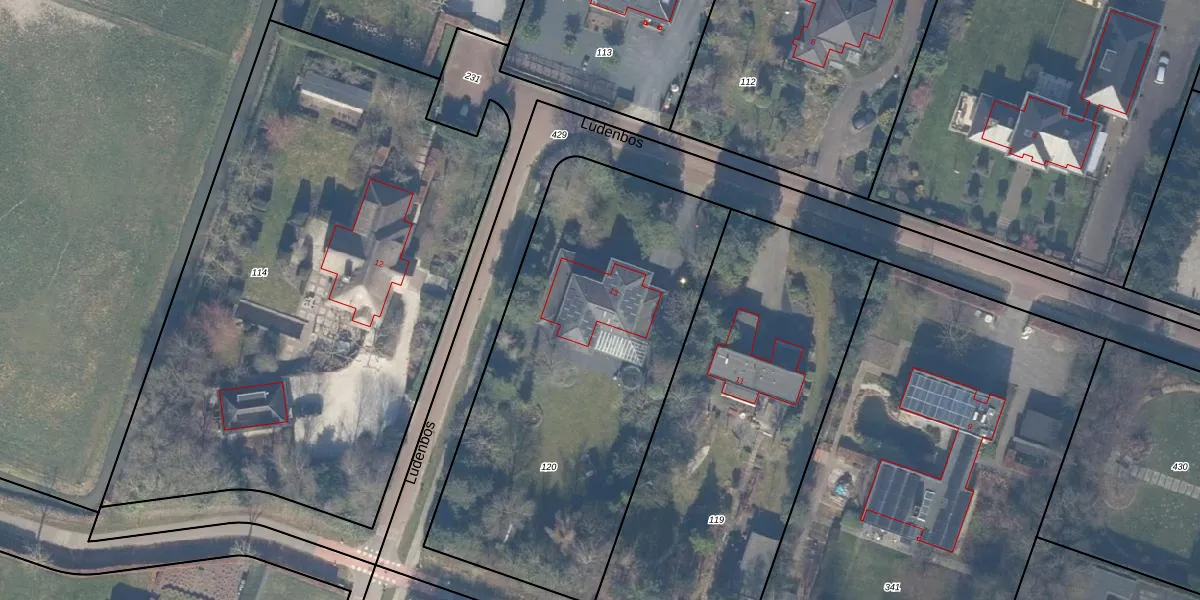 Het perceel waarop Ludenbos 13 staat heeft een oppervlakte van 2097 m². Dit is een zeer groot perceel. De perceeloppervlakte wordt geregistreerd door het Kadaster. Gedetailleerde informatie over de maten van dit perceel kunt u vinden in het rapport Kadastrale kaart met maatvoering van Ludenbos 13.