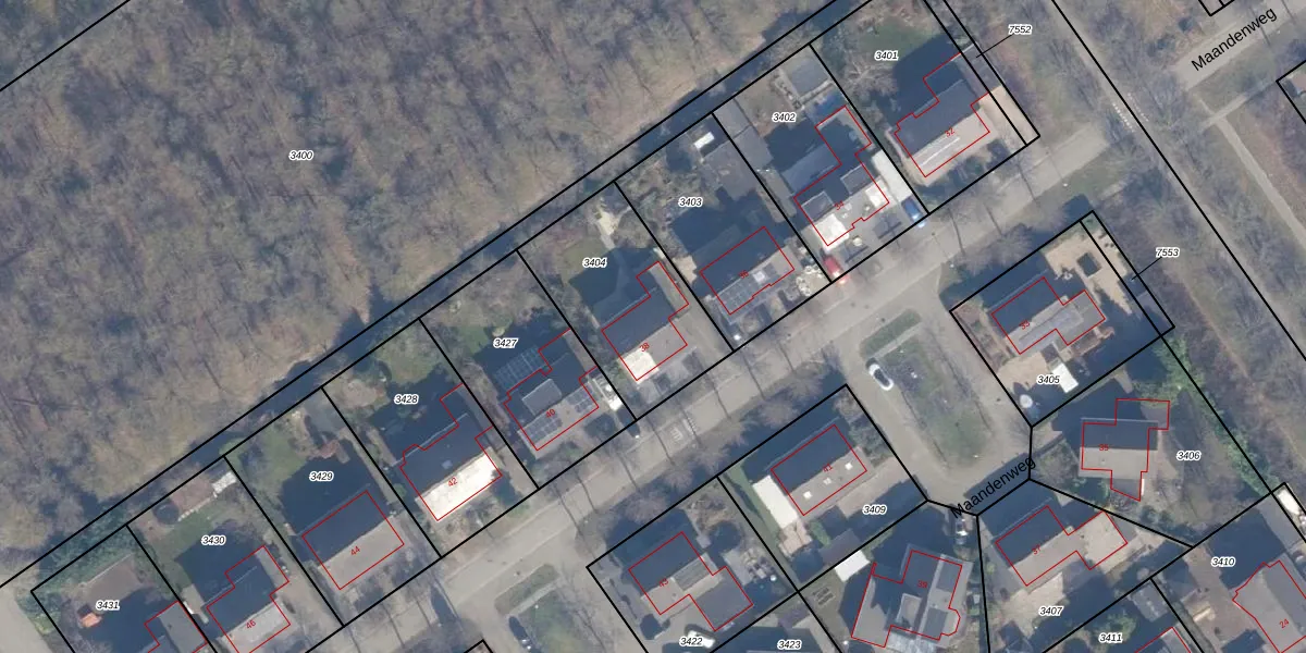 Het perceel waarop Maandenweg 38 staat heeft een oppervlakte van 585 m². Dit is een groot perceel. De perceeloppervlakte wordt geregistreerd door het Kadaster. Gedetailleerde informatie over de maten van dit perceel kunt u vinden in het rapport Kadastrale kaart met maatvoering van Maandenweg 38.