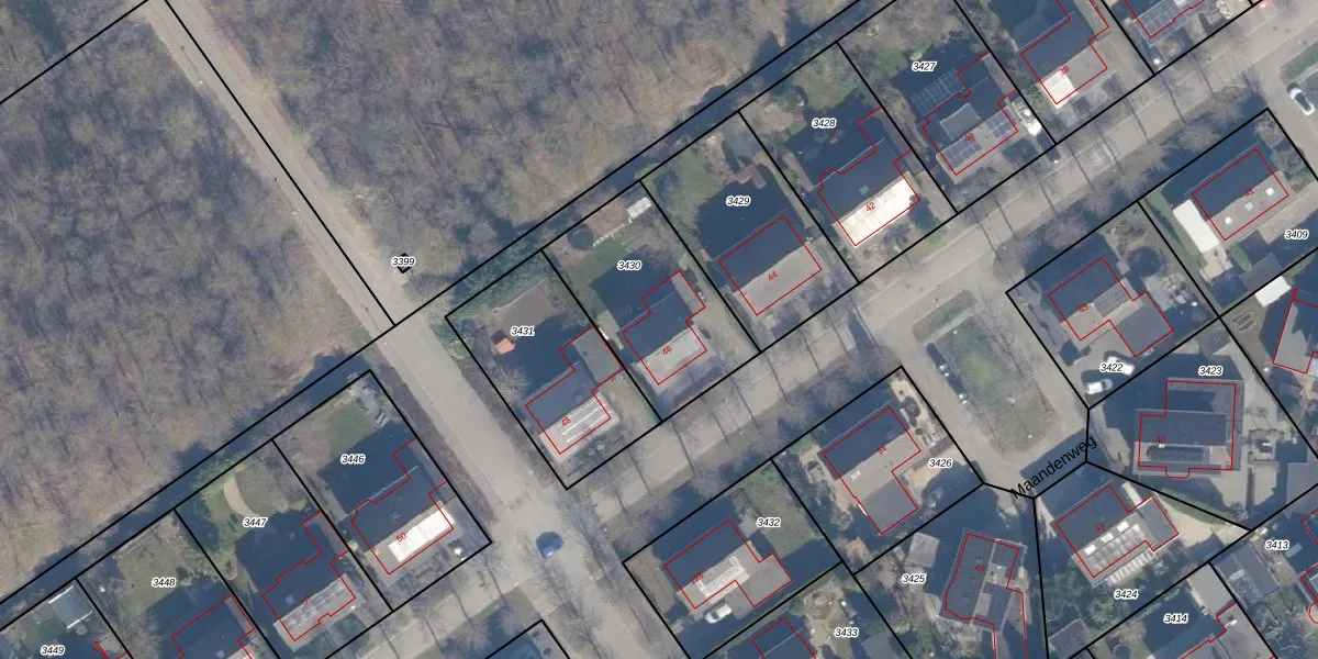 Het perceel waarop Maandenweg 46 staat heeft een oppervlakte van 585 m². Dit is een groot perceel. De perceeloppervlakte wordt geregistreerd door het Kadaster. Gedetailleerde informatie over de maten van dit perceel kunt u vinden in het rapport Kadastrale kaart met maatvoering van Maandenweg 46.