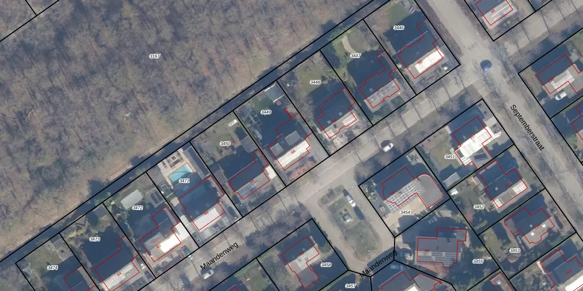 Maandenweg 56 is gelegen op kadastraal perceel AMR04B3449. Deze kadastrale aanduiding is uniek en wordt gebruikt door het Kadaster om eigendomsrechten en andere zakelijke rechten vast te leggen. Het perceel maakt onderdeel uit van de kadastrale gemeente Almere.